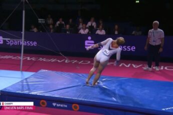 During the uneven bars final at the 2022 European Gymnastics Championships in Munich, French gymnast