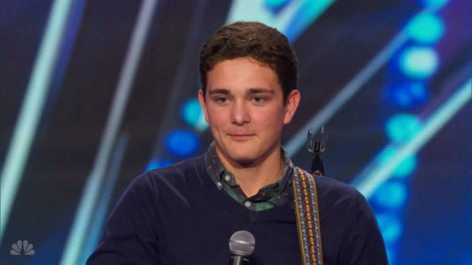As the song unfolded, the auditorium seemed to collectively lean in. The usual murmurs and rustling faded into silence, replaced by the steady sound of his chords and the soft intake of breath from the crowd. You could see people drying their eyes with the back of a hand, whispering to a neighbor, or simply looking up at the stage with rapt attention. The camera occasionally cut to a shot of his adoptive mother in the wings — her hands clasped, proud and a little stunned, tears tracing the lines on her face. That small focus on her reaction added another layer to the moment: this wasn’t just a personal triumph for Jaycob, it was a family moment played out in public, a private victory made communal.