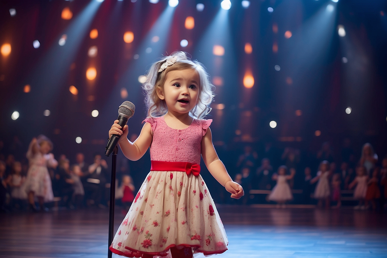 Three young girls step onto the grand stage, their presence commanding attention like a trio of ethereal muses descended from the heavens themselves. Their silhouettes bathed in the soft glow of the spotlight, they exude an aura of confidence and anticipation, ready to share their musical prowess with the world. As the first note escapes their lips, it’s as if time itself holds its breath, caught in the rapture of their harmonious blend. Each melody they weave is like a delicate tapestry, intricately crafted with passion and purpose. Their voices intertwine with a seamless elegance, creating a symphony of sound that dances upon the ears of all who listen.